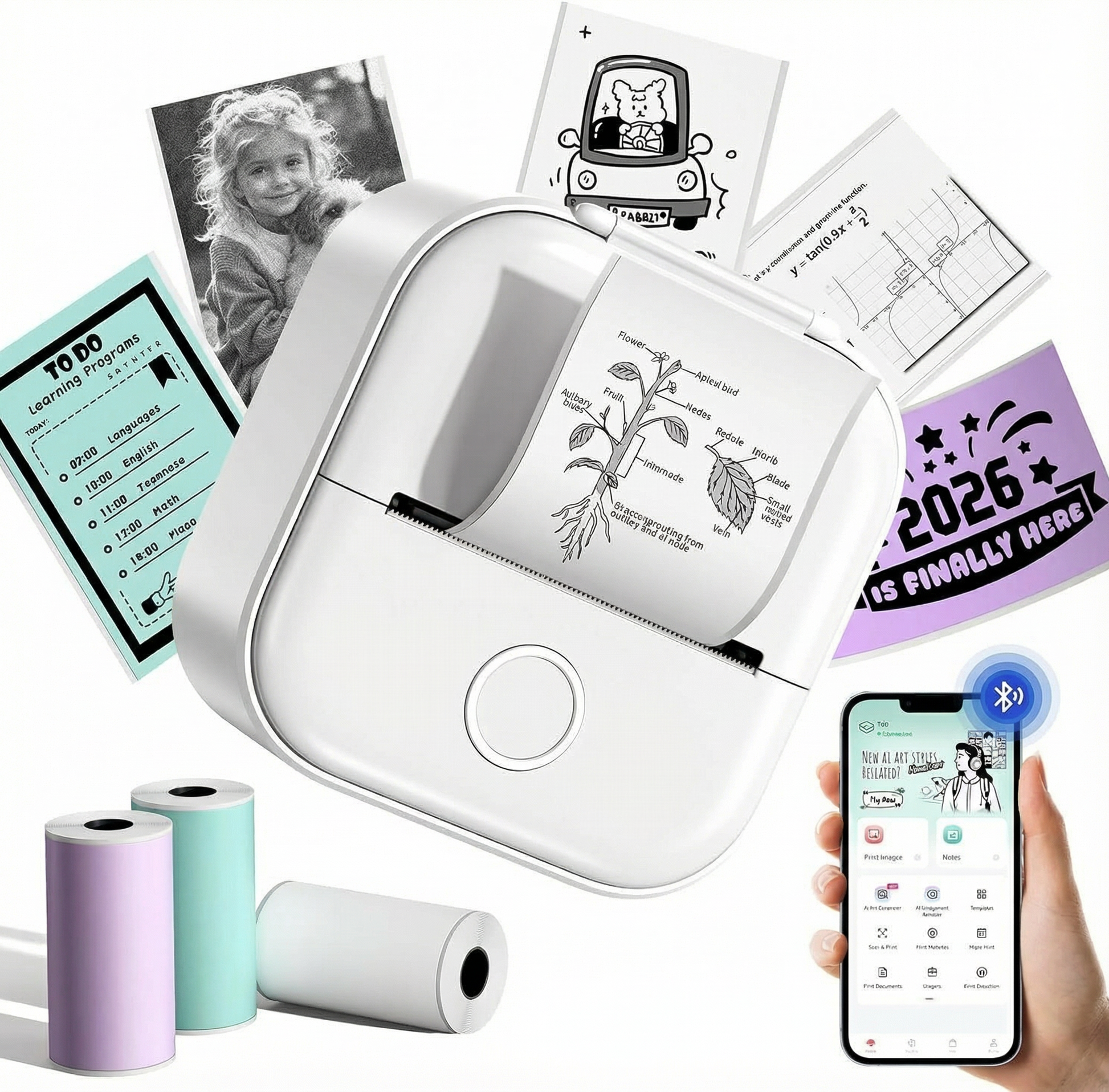 Ideal for printing labels, photos, price tags, and student notes via inkless thermal technology.